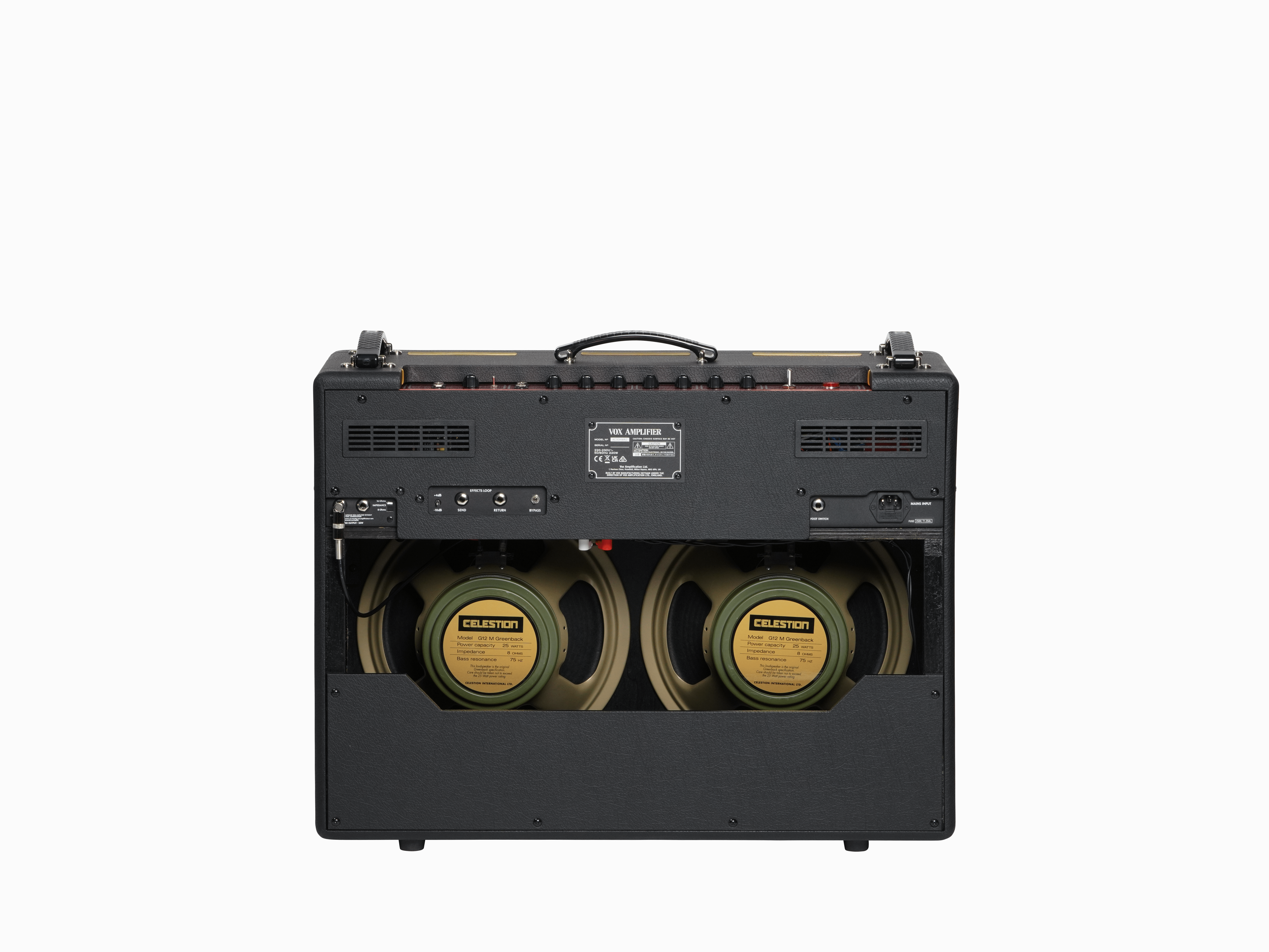 Mit zwei 12-Zoll-Celestion-G12M-Greenbacks im Inneren ist das Ergebnis unverkennbar VOX, aber mit einer besonderen Note. Die Greenbacks sorgen für rundere Höhen, einen weicheren Anschlag und ein schnelleres Aufbrechen des Lautsprechers. Während der Alnico Blue für „Glass“ und „Sparkle“ steht, verschreibt sich der Greenback ganz der Wärme und Kraft.