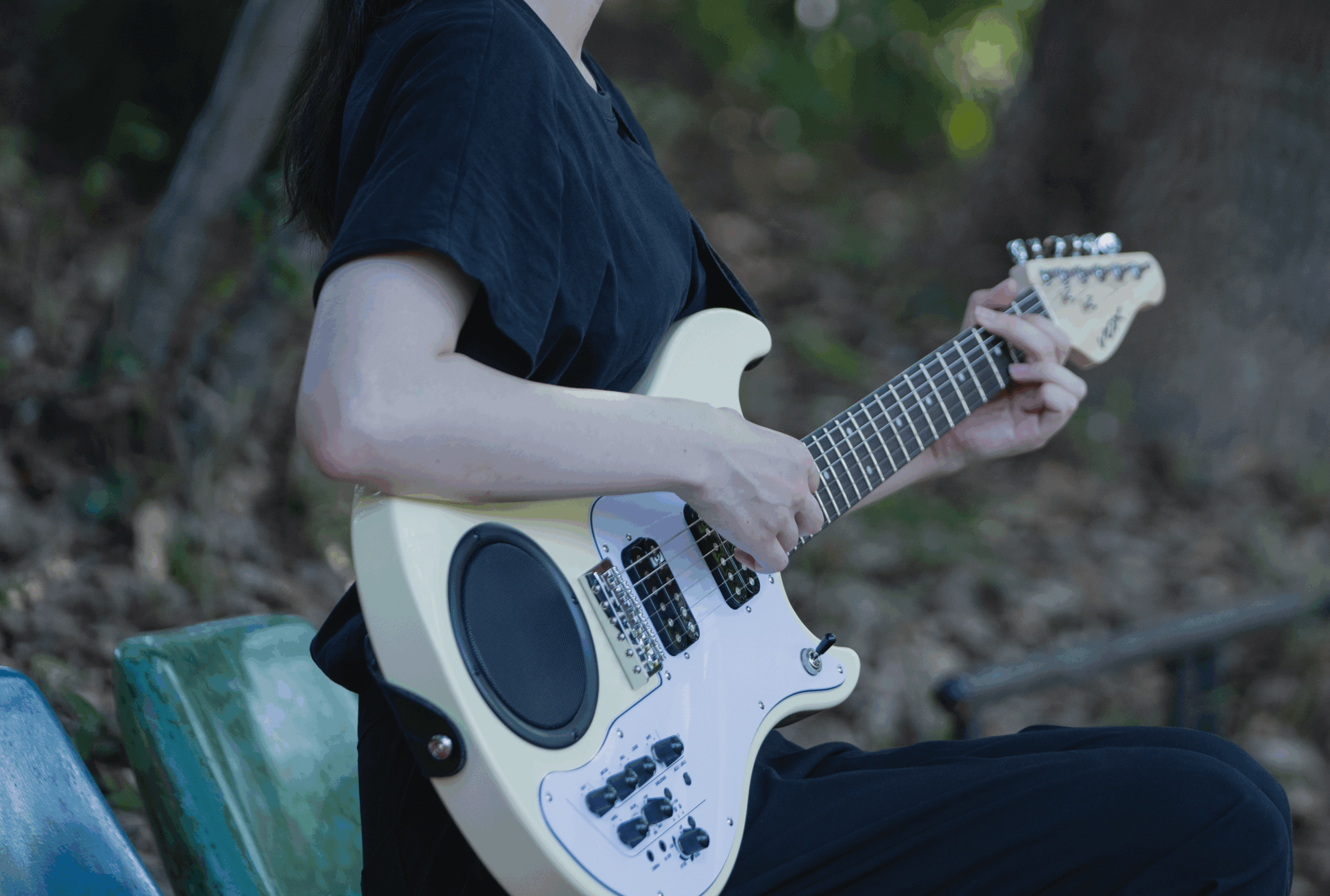 アンプ、エフェクト、リズム、スピーカーを統合したオールインワン・エレキギター
